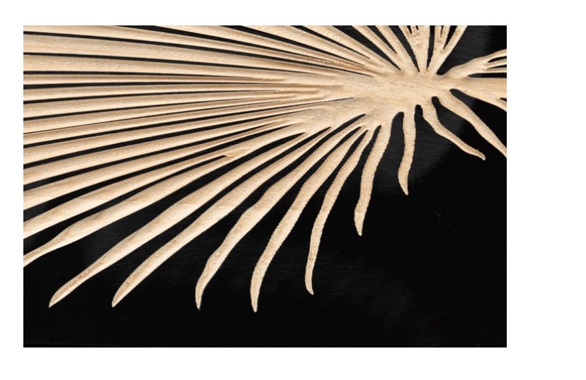 Esta original cómoda tallada con hoja grande, está realizada en madera de mango.