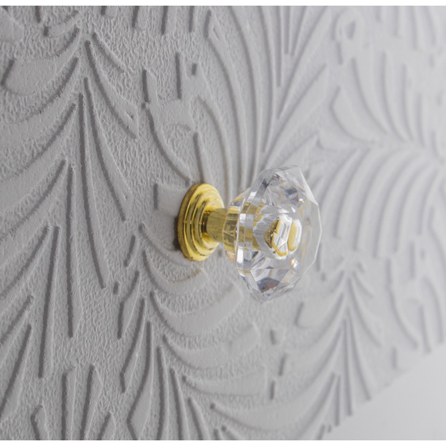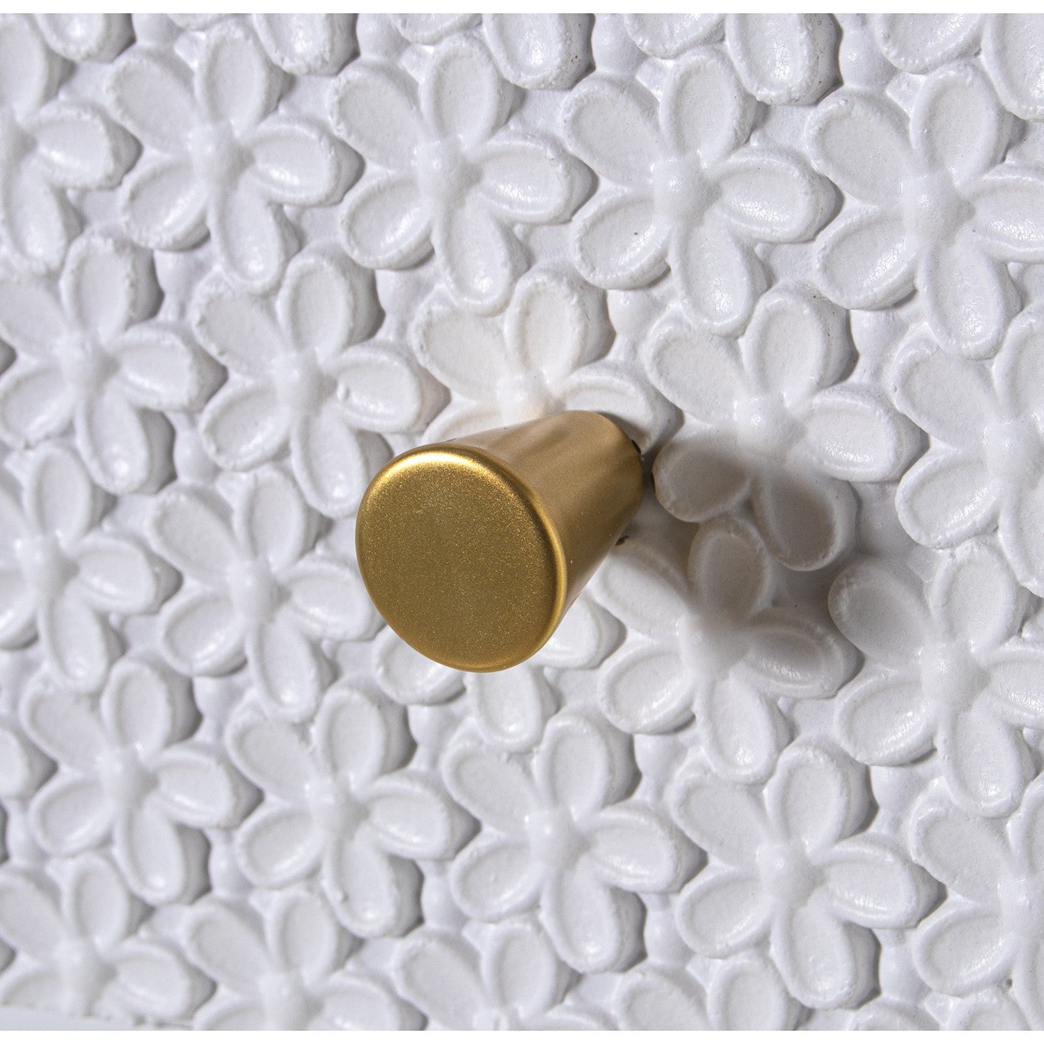 Otro con un elegante tirador clásico y detalle de hoja dorada grabada.