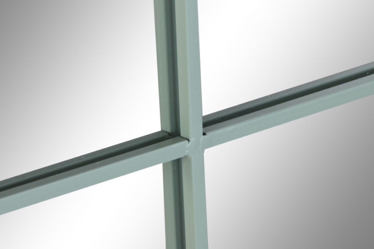 Este espejo ventana verde pastel de metal tiene unas generosas dimensiones que lo convertirán en la pieza estrella de un salón o dormitorio. Toma su particularidad de su diseño ventana.