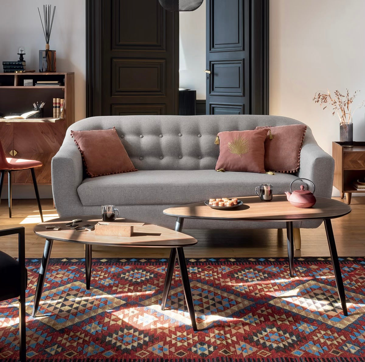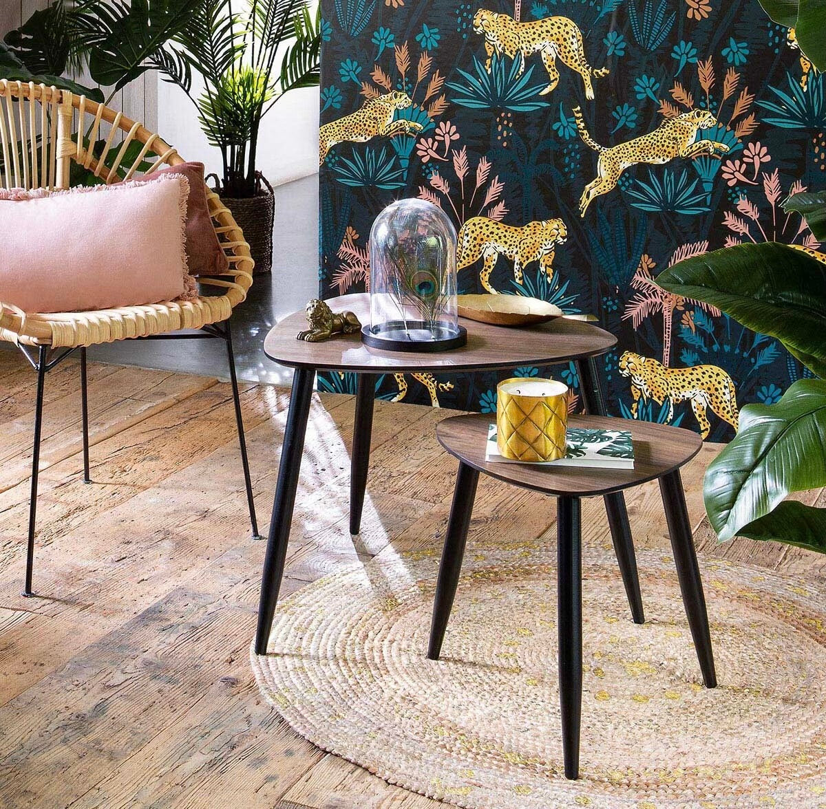 Para lograr una decoración muy chic contemporánea, opta por muebles cuyo diseño atraiga la atención, como este set de 2 mesas auxiliares nido de nogal “Milano” de ivvidek